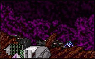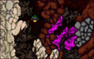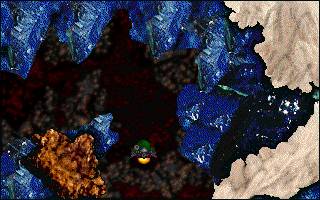 Screen Shot: Hyper Lander 2 Classic This blueish rock formation is at the very top of a huge ascension chamber which opens below it. The type of mineralization would suggest venting gases for some length of time during the geologic history of this moon ..?